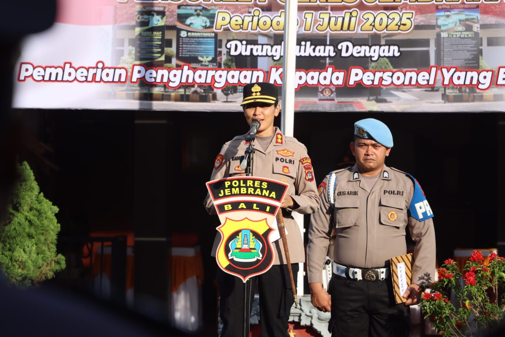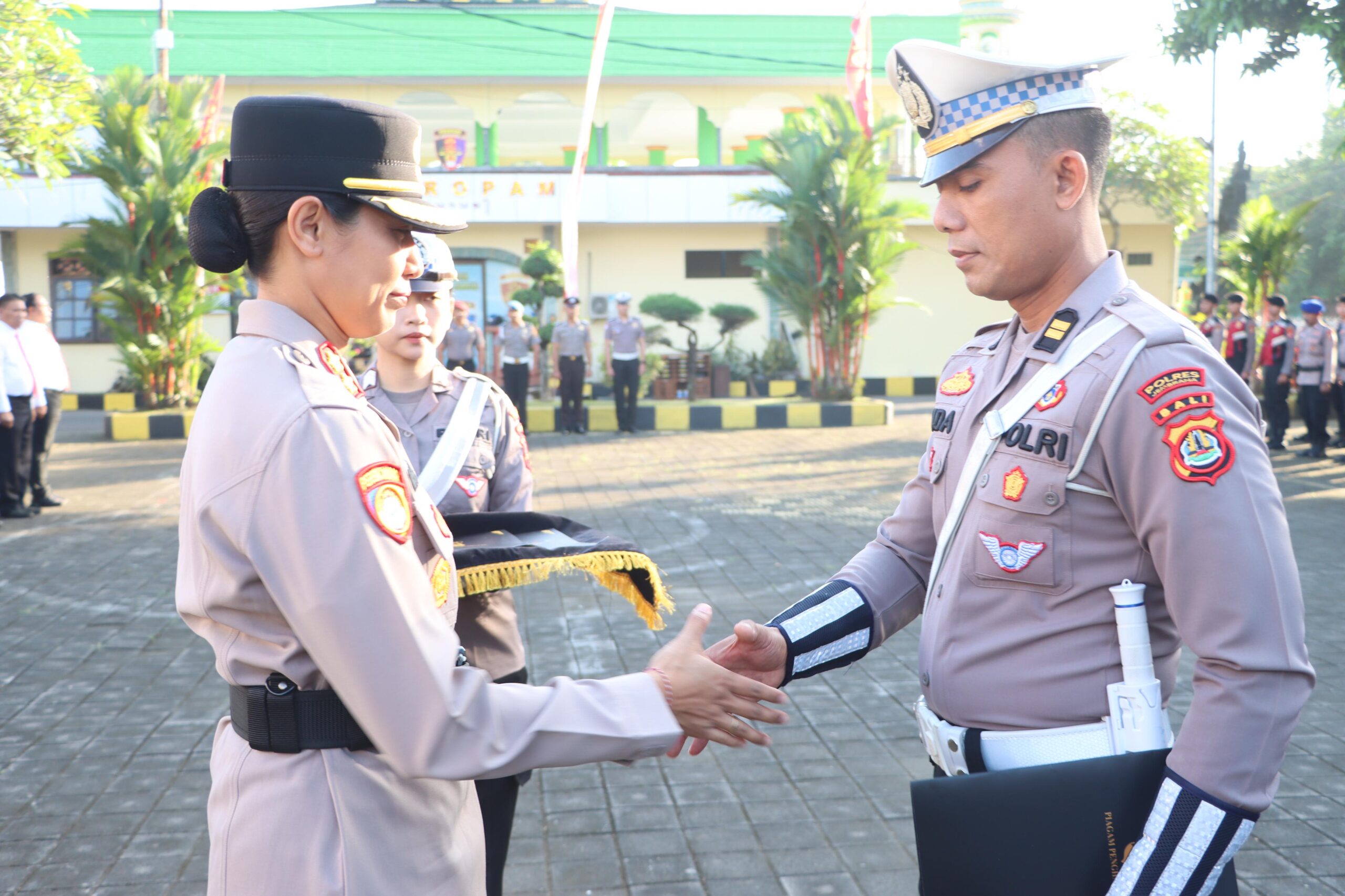 Jembrana – Polres Jembrana menggelar upacara laporan kenaikan pangkat bagi 39 personel Polri yang dirangkaikan dengan pemberian penghargaan kepada sejumlah anggota yang dinilai berprestasi selama tahun 2024. Upacara tersebut berlangsung di Lapangan Apel Mapolres Jembrana. Senin (30/6/2025) pagi.