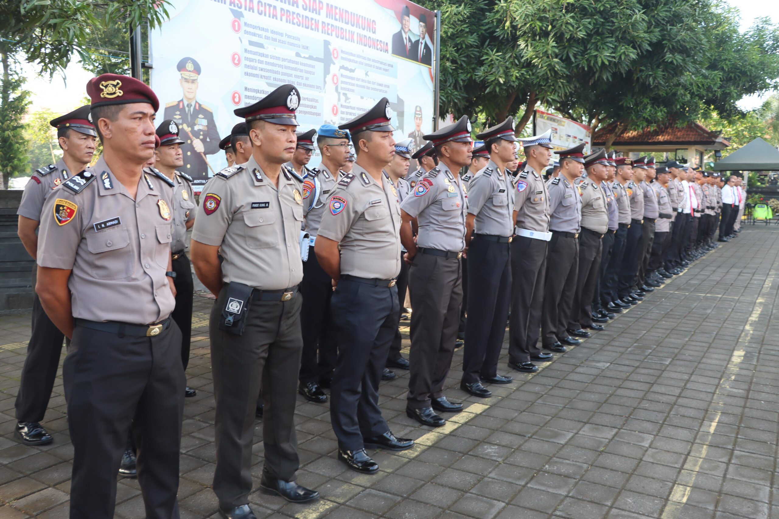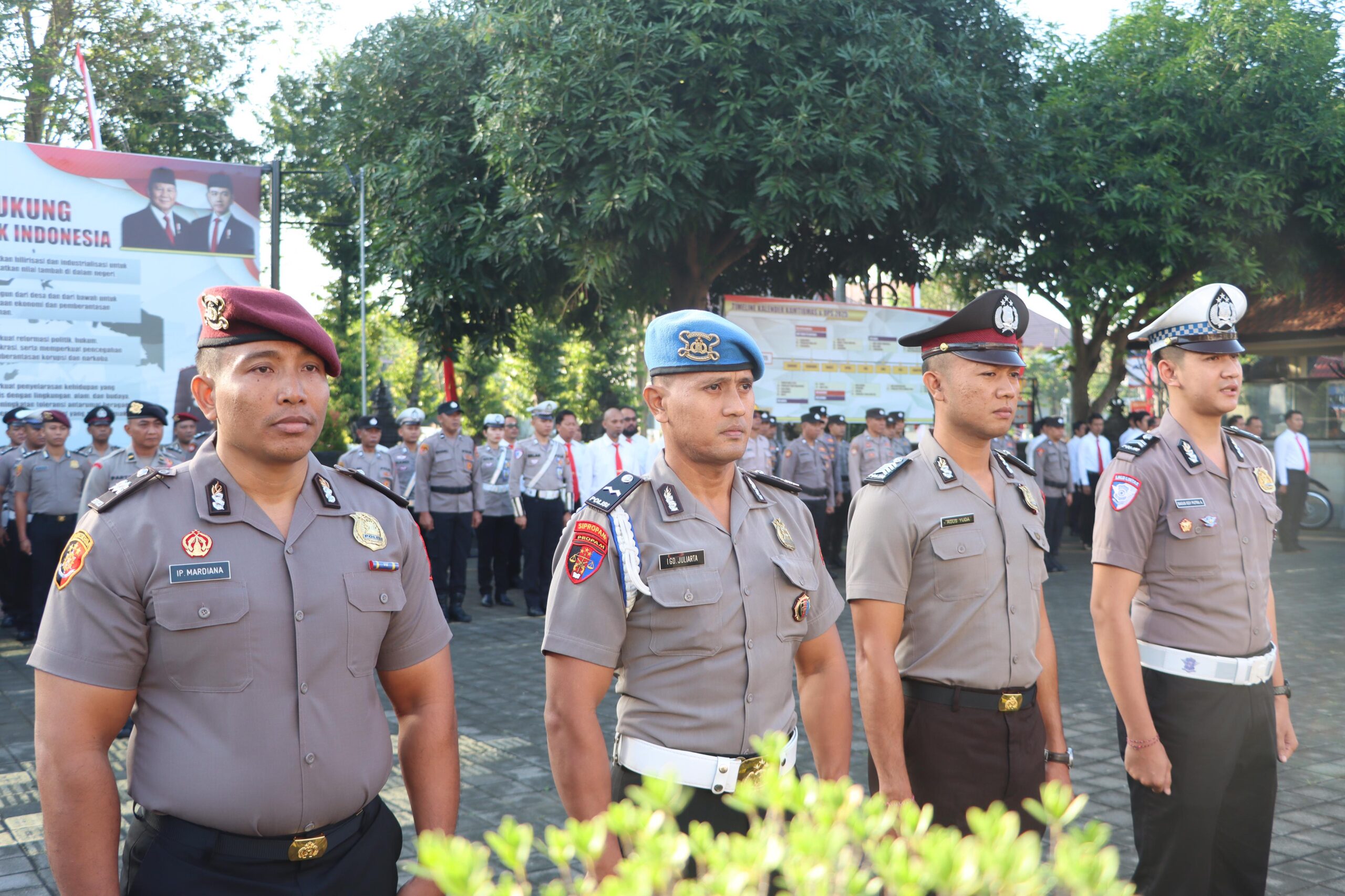 Usai upacara, prosesi tradisi penyiraman air bunga kepada personel yang naik pangkat turut menambah khidmat dan semangat kebersamaan dalam tubuh Polres Jembrana. (!)
