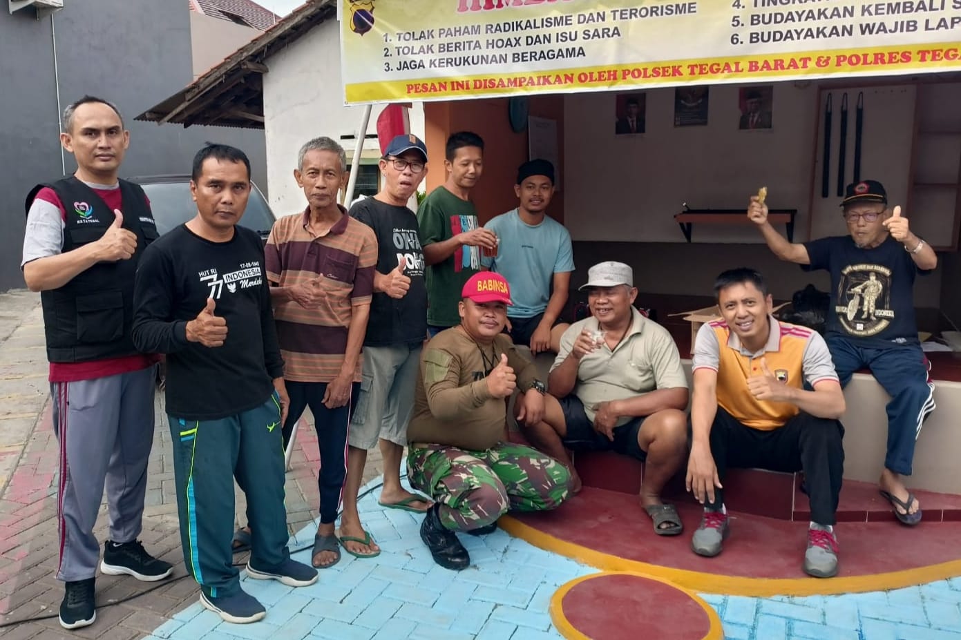 Guna mendukung dan mewujudkan keamanan lingkungan, Polres Tegal nelalui Bhabinkamtibmas dan Tiga Pilar bersama warga Kelurahan Tegalsari Guyub Rukun melaksanakan kerja bakti dengan menggelar kegiatan bersih-bersih di Pos Kamling wilayah RT 08 RW 04 Kelurahan Tegalsari, Senin (22/5/2023).