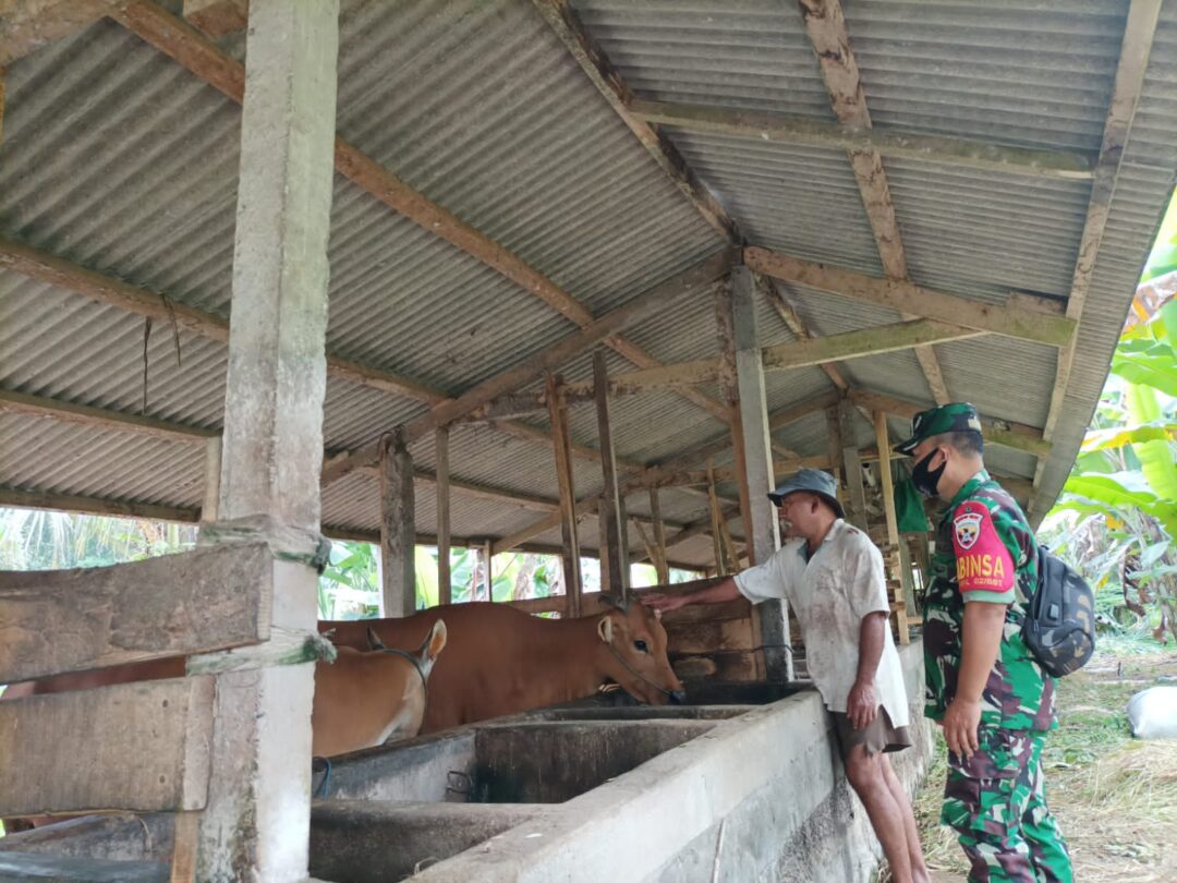 Guna mewaspadai Penyakit Kuku dan Mulut (PKM) pada hewan ternak, Kodim 1626/Bangli melalui Babinsa Koramil 02/Susut melakukan anjangsana berkunjung kepeternakan milik warga.