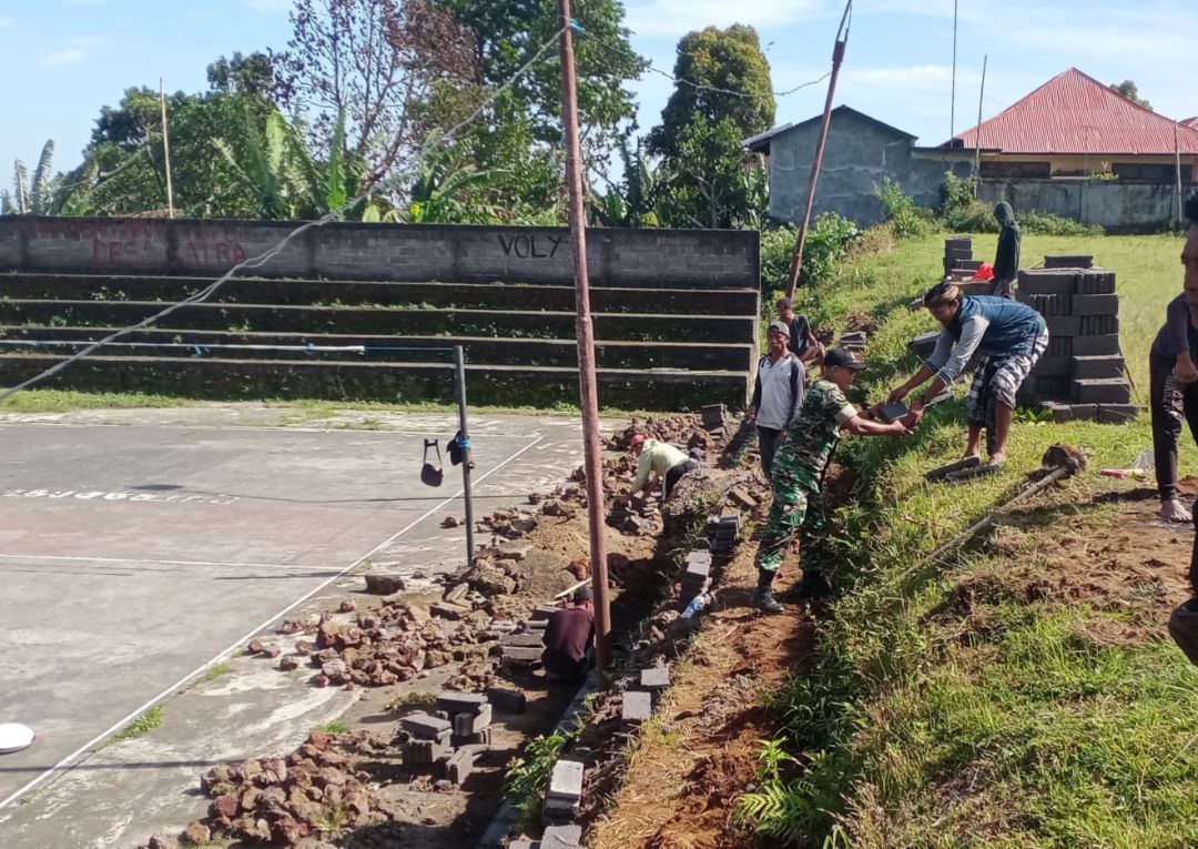 Bersama warga binaannya terutama para pemuda Sertu Ketut Yohanes bahu membahu dalam melaksanakan pembuatan lapangan Bola Voli, yang memang sangat antusias dengan Olahraga yang mengandalkan kekuatan tangan ini.