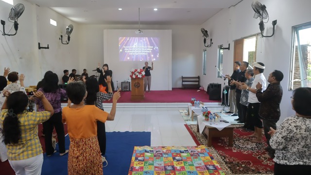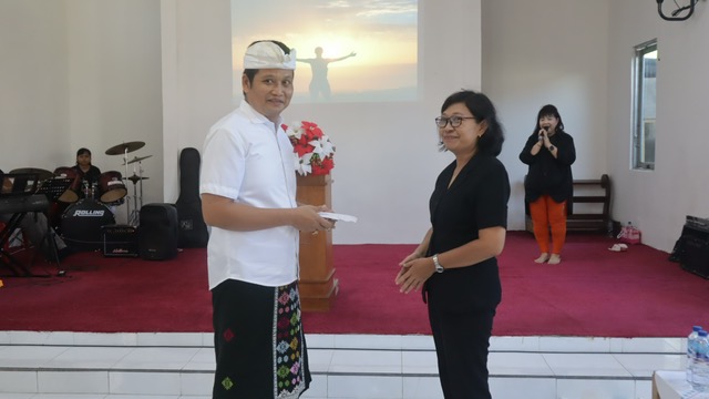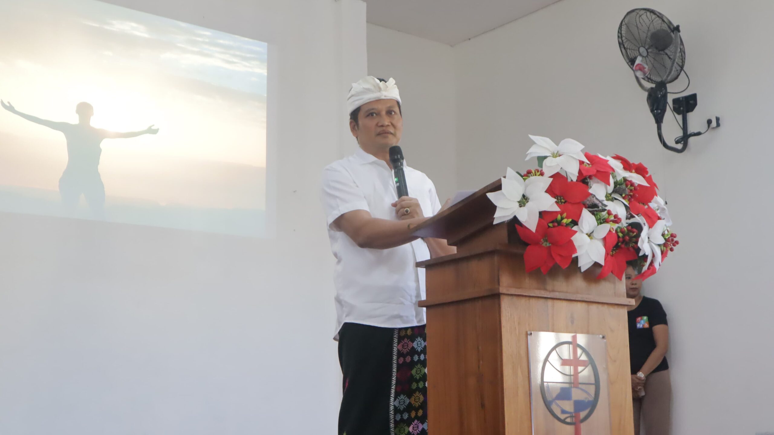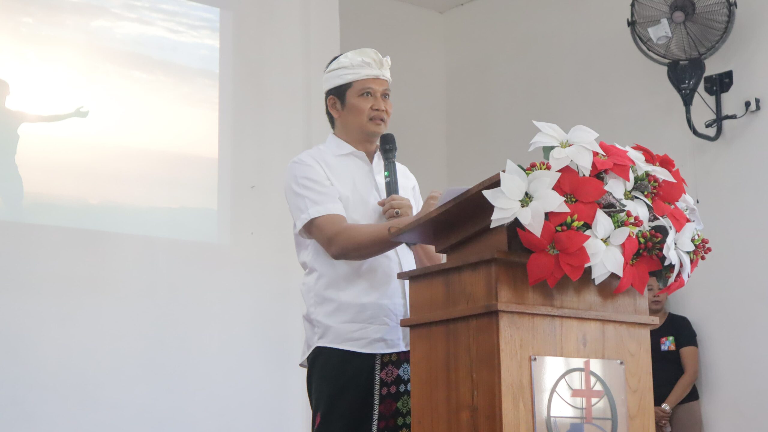 Jembrana — Bupati Jembrana, I Made Kembang Hartawan menghadiri perayaan Paskah bersama Persekutuan Wanita Kristen Jembrana yang diselenggarakan di Pos Pembinaan Iman GKMI Ekklesia, Kelurahan Banjar Tengah, Sabtu (26/4/2025).