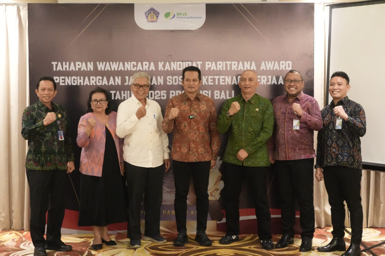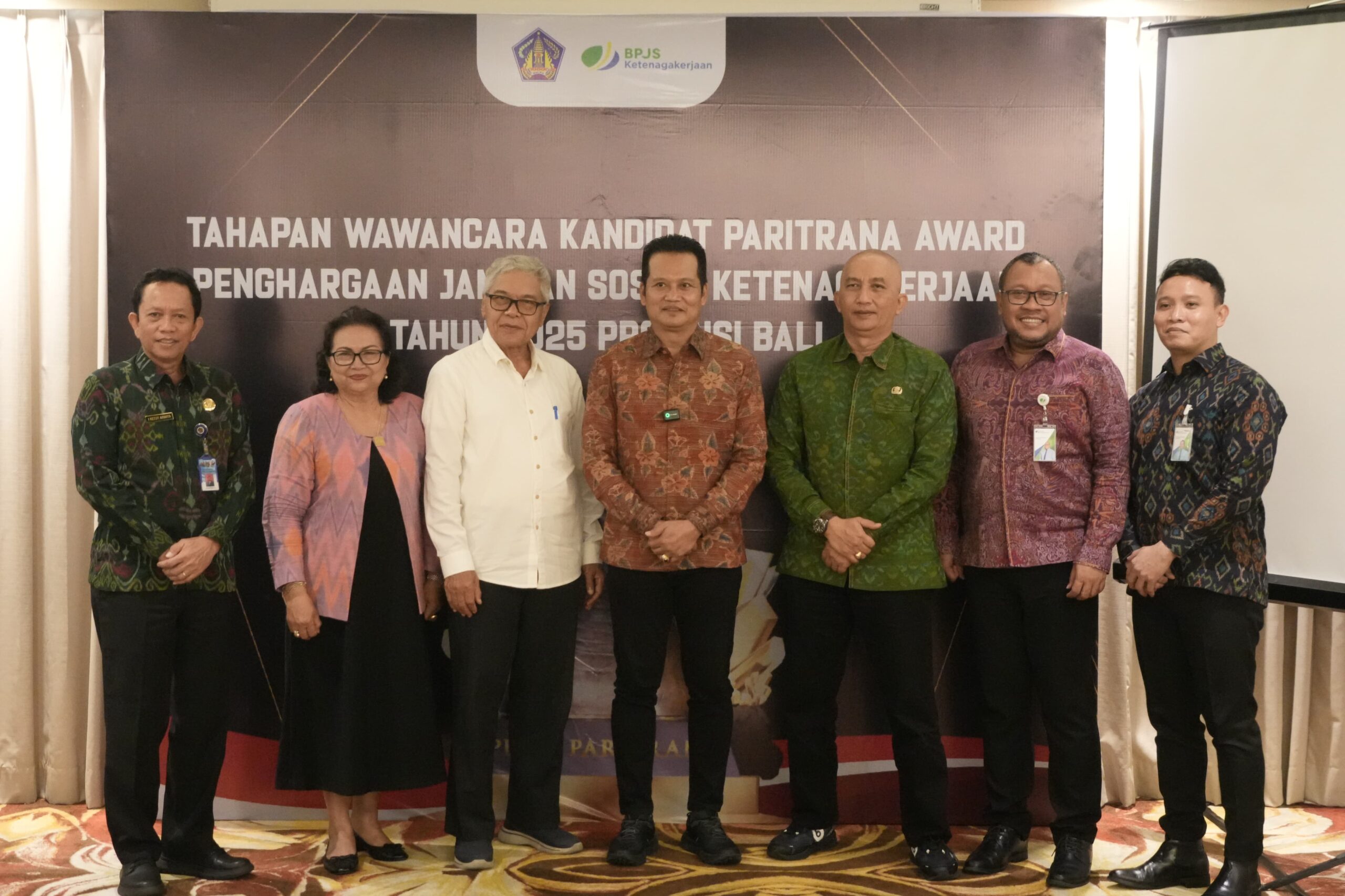 Jembrana – Bupati Jembrana, I Made Kembang Hartawan mengikuti tahapan wawancara kandidat Paritrana Award yang merupakan penghargaan tentang penyelenggaraan Jaminan Sosial Ketenagakerjaan, Senin (28/7/2025) di Four Star Hotel Denpasar.