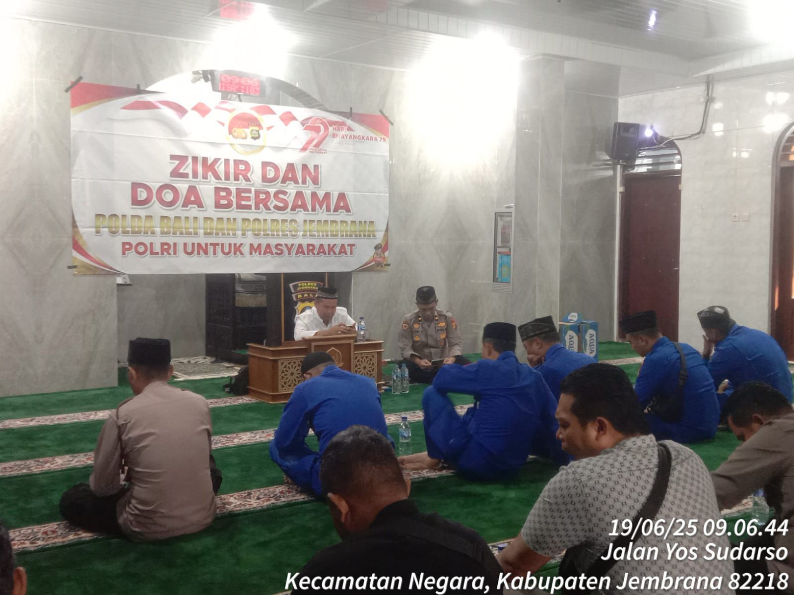 Secara bersamaan, di Masjid Baitul Muhtarifin, doa bersama juga digelar bagi personel yang beragama Islam. Kegiatan dipimpin oleh Paur Dalpers Bag SDM Polres Jembrana, IPDA Ahmad Tri Untung, dan diikuti oleh 20 personel. Setelah doa bersama, kegiatan dilanjutkan dengan tausiyah singkat yang turut mengangkat pentingnya integritas dan dedikasi dalam tugas kepolisian.