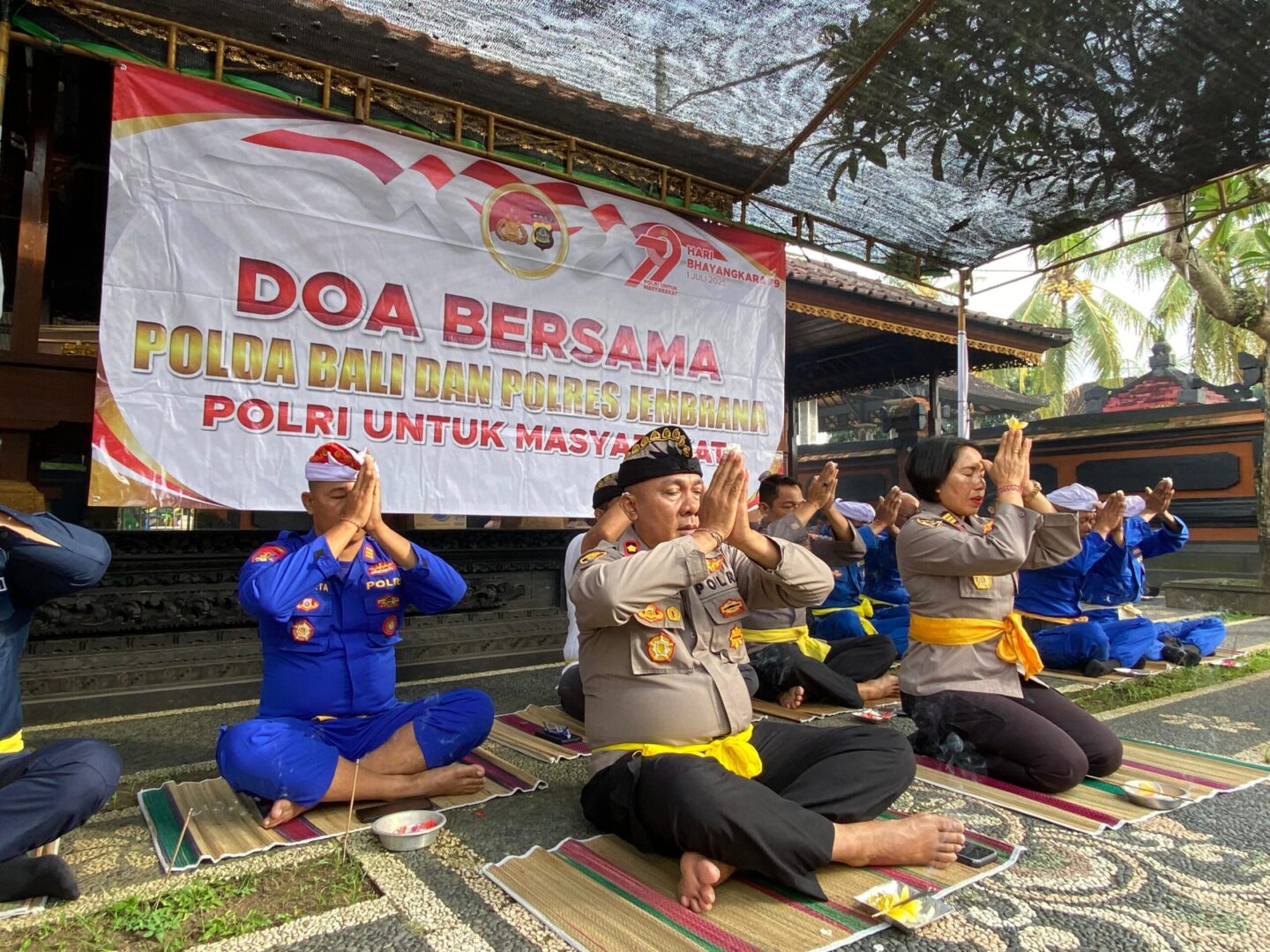 Jembrana – Polres Jembrana menggelar kegiatan doa bersama lintas agama sebagai bagian dari rangkaian peringatan Hari Bhayangkara ke-79, Kamis pagi (19/6/2025). Kegiatan ini berlangsung secara serentak di dua tempat ibadah yang ada di lingkungan Polres Jembrana, yakni Pura Puja Astuti dan Masjid Baitul Muhtarifin.