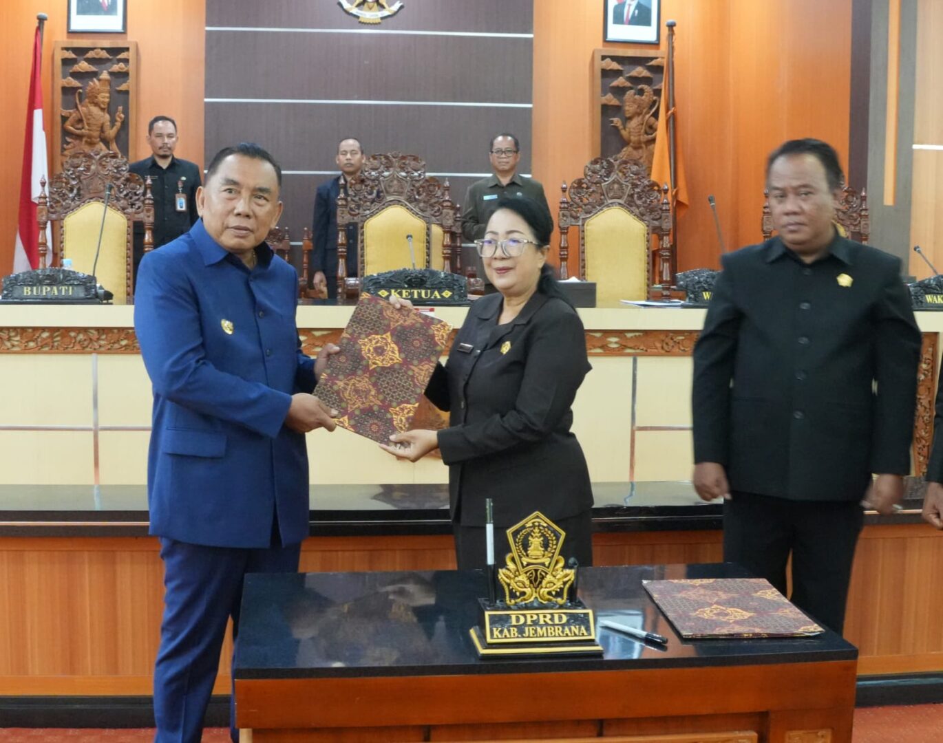 Rapat paripurna tersebut dipimpin oleh Ketua DPRD Jembrana, Ni Made Sri Sutharmi, dengan agenda utama penyampaian pendapat akhir Bupati Jembrana atas pengambilan keputusan terhadap tiga Ranperda.