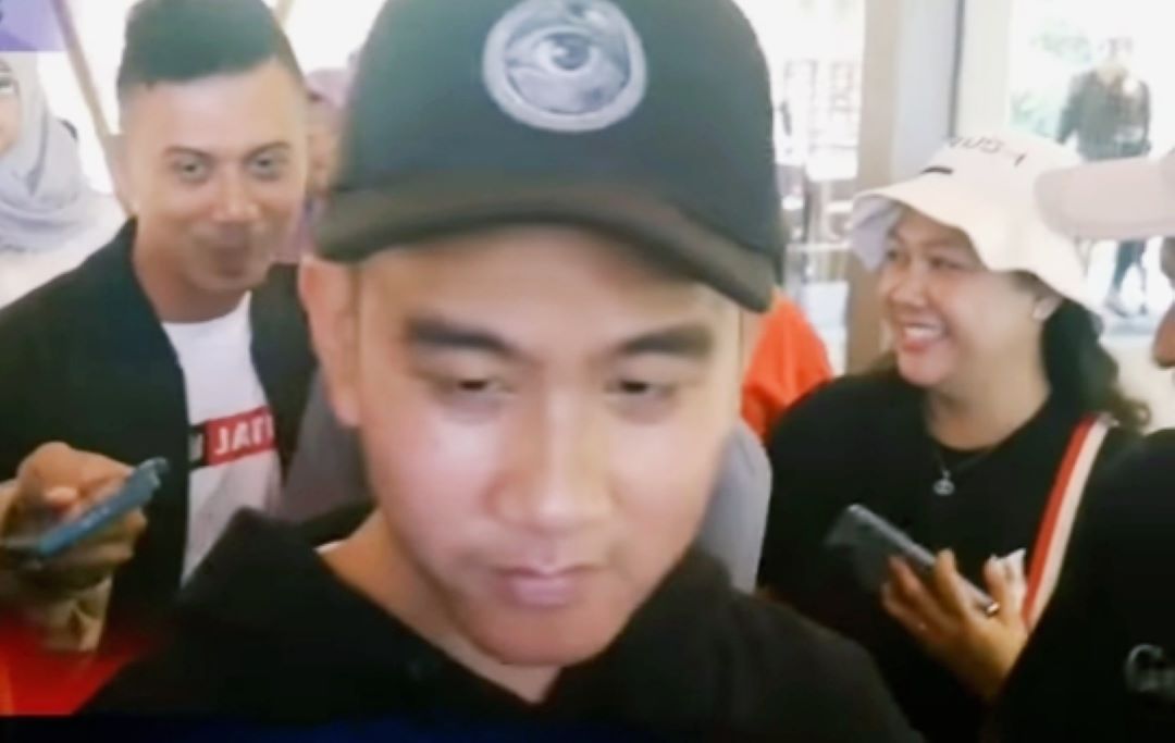 Keterangan Foto ; Gibran Kena Semprot Usai Tertibkan Spanduk Kampanye