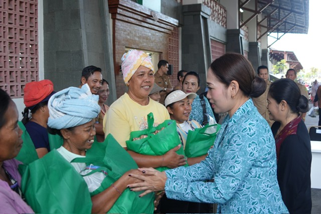 Ia juga menyampaikan bahwa kunjungan ini sekaligus dimanfaatkan untuk melihat langsung kondisi pasar, termasuk stabilitas harga dan daya beli masyarakat menjelang Hari Raya Galungan dan Kuningan. Sebanyak 30 orang tenaga panggul dan pikul menerima bantuan sembako berupa 10 kilogram beras, 1 liter minyak goreng, dan 10 butir telur.