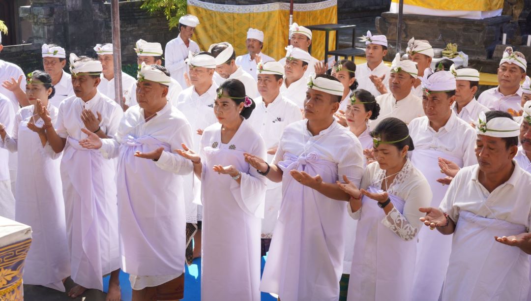 Dihadiri secara langsung oleh Bupati I Nengah Tamba bersama Wabup IGN Patriana Krisna didampingi istri masing-masing serta Sekda I Made Budiasa, upacara dipuput oleh Ida Peranda Gede Manubawa Manuaba saking Griya Megati, Desa Batuagung, Jembrana.