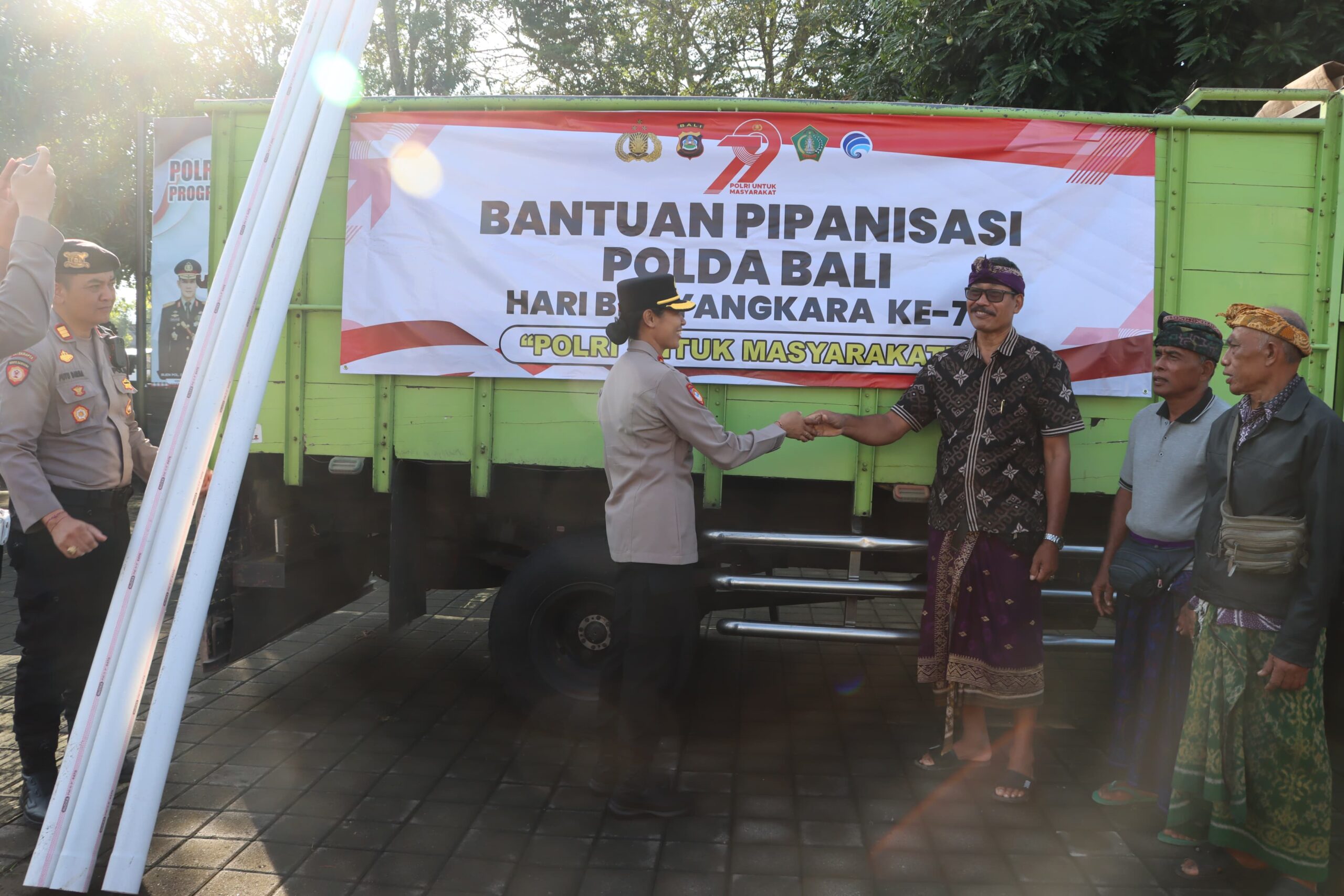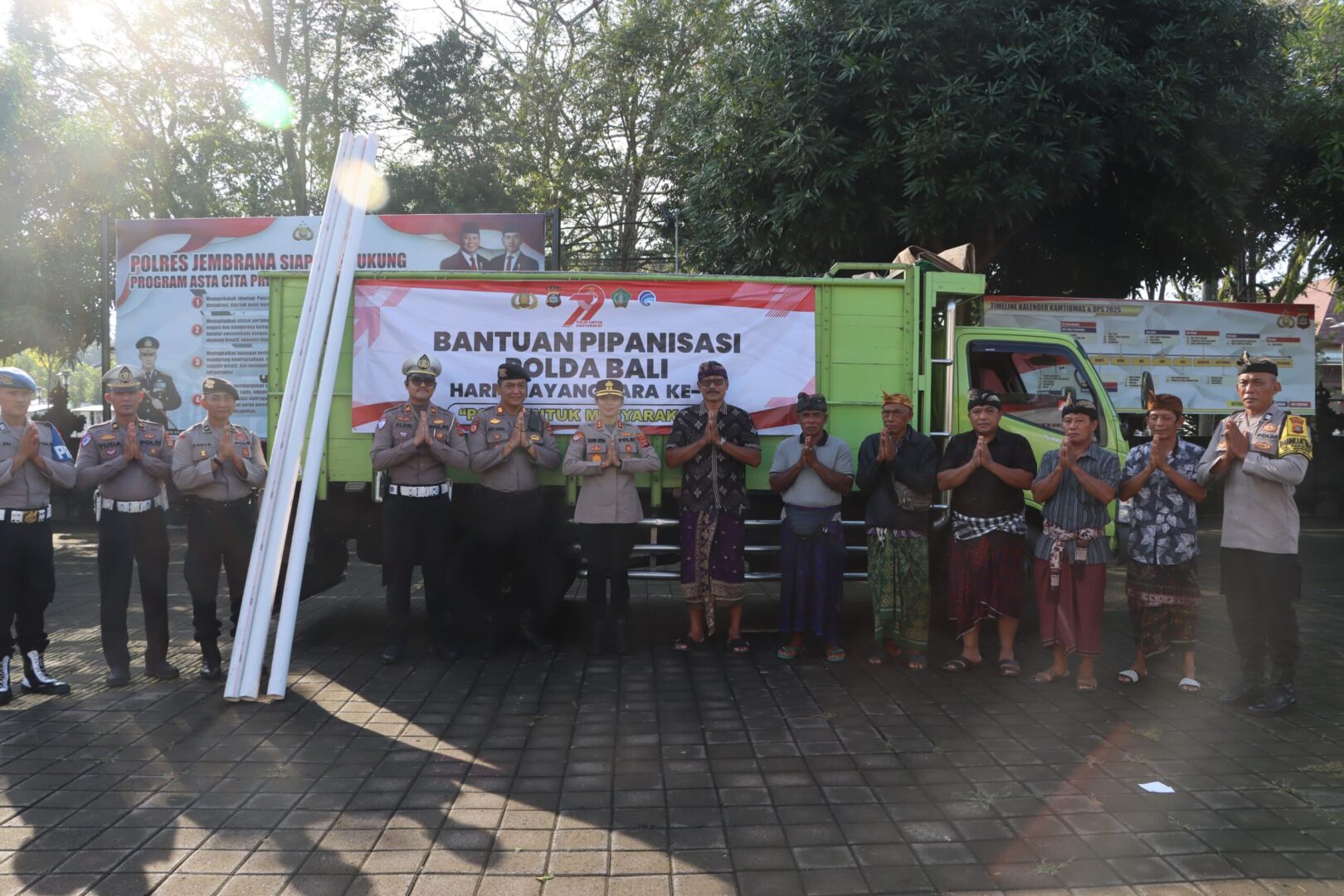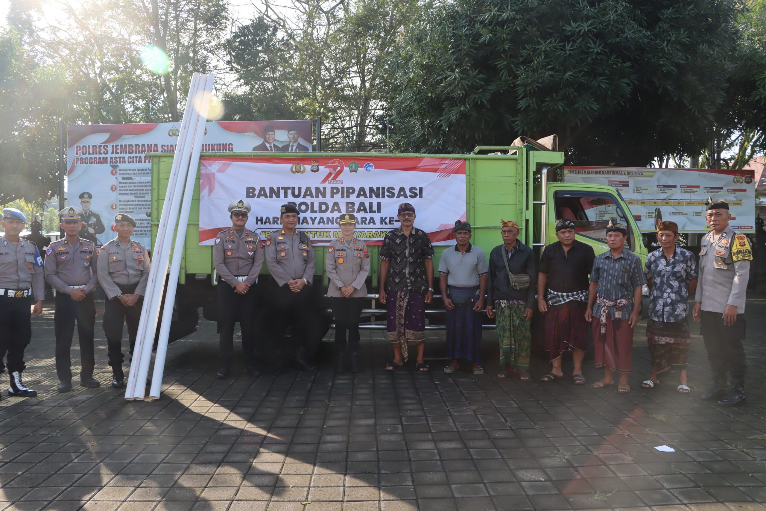 Jembrana – Dalam rangka memperingati Hari Bhayangkara ke-79 tahun 2025, Polda Bali melalui Polres Jembrana menyerahkan bantuan pipanisasi kepada masyarakat Desa Pergung, Kecamatan Mendoyo, Kabupaten Jembrana, Minggu (15/6/2025), pagi.