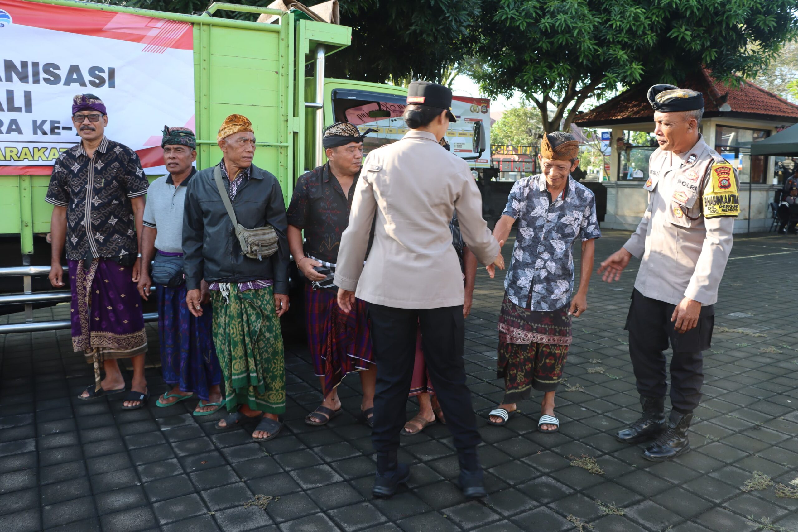 Penyerahan bantuan dilakukan langsung oleh Kapolres Jembrana AKBP Kadek Citra Dewi Suparwati, S.H., S.I.K. kepada Kelompok/Sekehe Yeh Pancaka Tirta Banjar Pangkung Lubang, Desa Pergung.