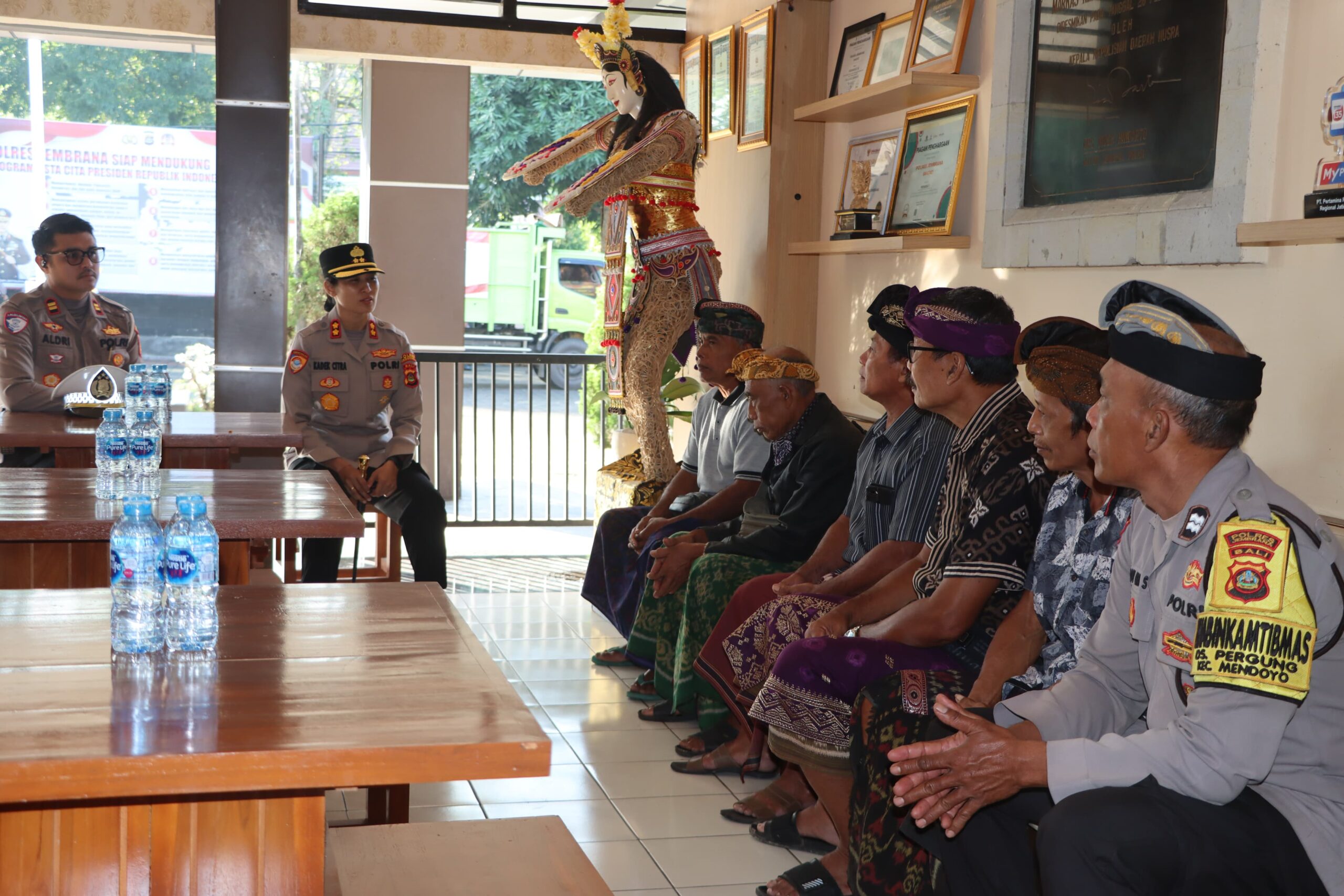 Turut hadir dalam kegiatan ini di antaranya Kasat Lantas Polres Jembrana IPTU Aldri Setiawan, Kasat Samapta AKP I Putu Darma Santika, KRI Sat Lantas IPTU I Wayan Dharmayuda, Bhabinkamtibmas Desa Pergung AIPTU I Putu Oka Sandiyasa, serta Ketua dan pengurus Kelompok Yeh Pancaka Tirta.