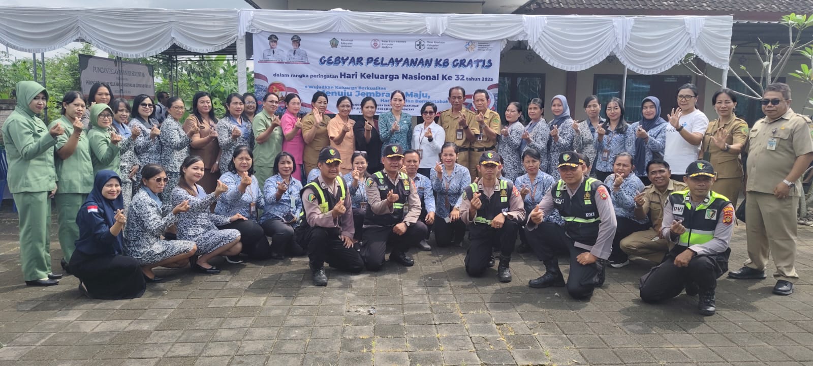 Sejumlah pejabat turut hadir memberikan dukungan, antara lain Kepala BKKBN Provinsi Bali dr. Ni Luh Gede Sukardiasih, M.For., M.A.R.S., Sekda Jembrana Drs. I Made Budiasa, M.Si., Kepala Dinas PPPA-PPKB Jembrana Ni Kade Ari Sugianti, S.Pd., M.Pd., Ketua Tim Penggerak PKK Kabupaten Jembrana yang juga Ibu Bupati Jembrana, serta Ketua Dharma Wanita, perwakilan organisasi profesi seperti IDI, IBI, dan Bhabinkamtibmas setempat.