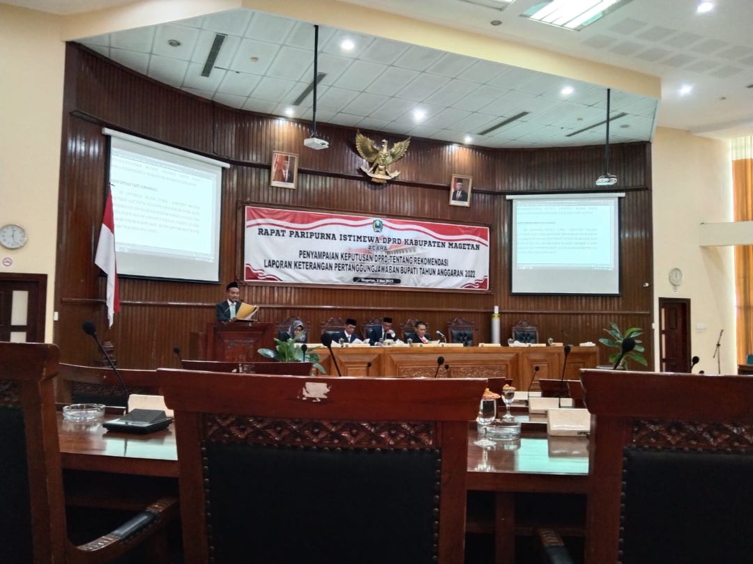 DPRD Magetan menyoroti kenerja pemkab Magetan dalam menjalankan APBD tahun 2022. Setidaknya ada lima indikator capaian yang belum tercapai.Hal ini terungkap dalam Rapat paripurna istimewa DPRD Magetan dalam agenda Keputusan DPRD tentang rekomendasi laporan keterangan pertanggungjawaban bupati tahun anggaran 2022 di ruang paripurna pada Rabu (3/5/2023).