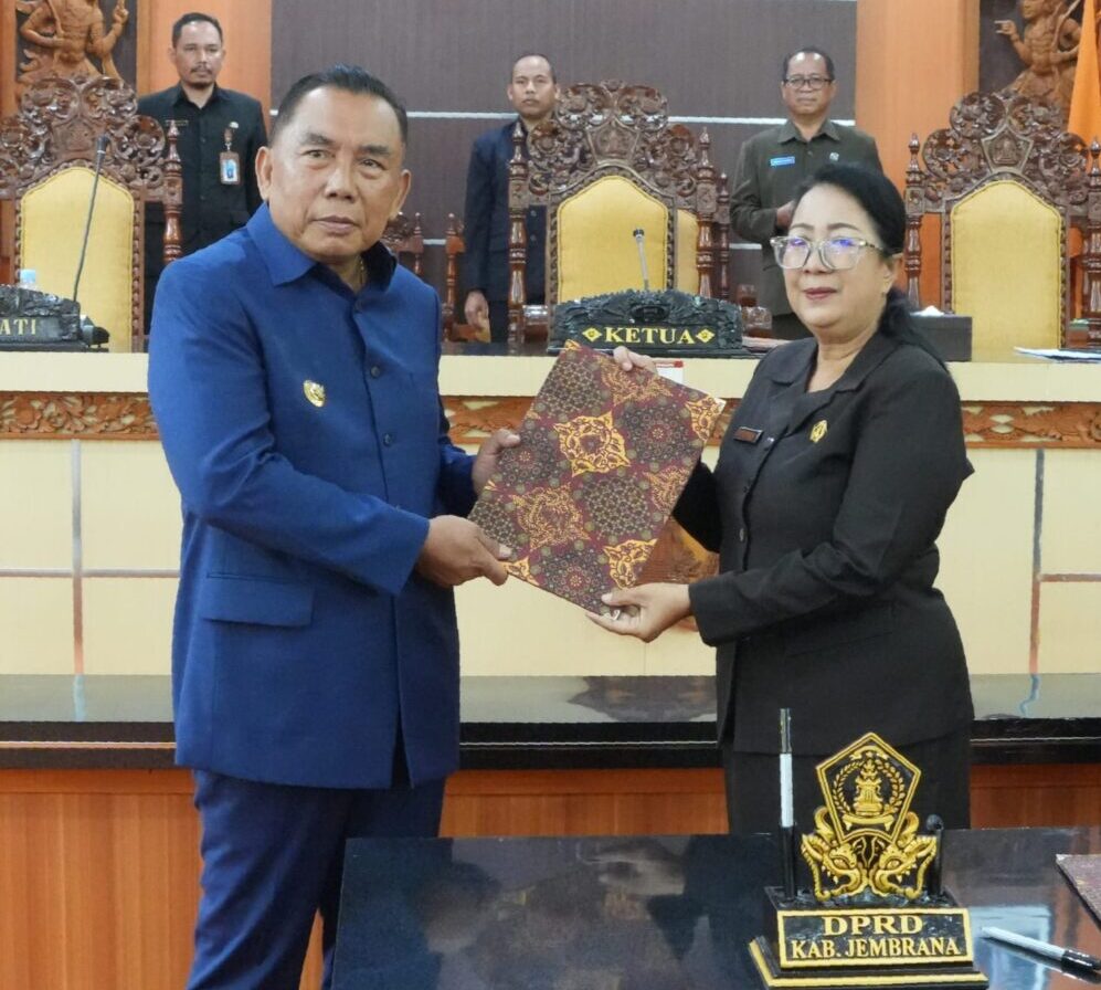 Jembrana – Rapat Paripurna I DPRD Kabupaten Jembrana Masa Persidangan I Tahun Sidang 2024/2025 yang dilaksanakan pada Hari Senin, 13 Januari 2025 bertempat di Ruang Sidang Utama DPRD Kabupaten Jembrana menetapkan tiga Rancangan Peraturan Daerah (Ranperda) menjadi Peraturan Daerah (Perda).