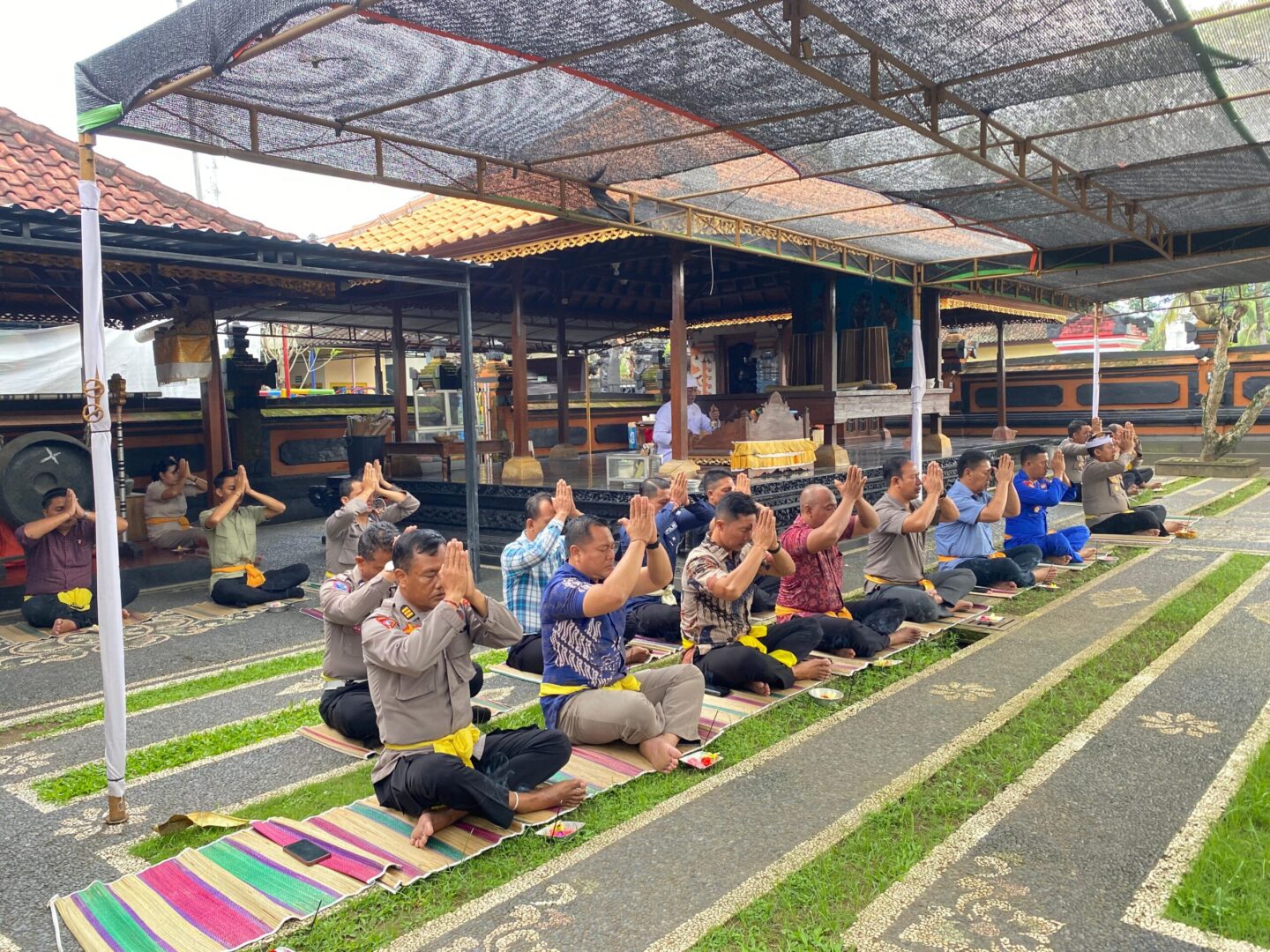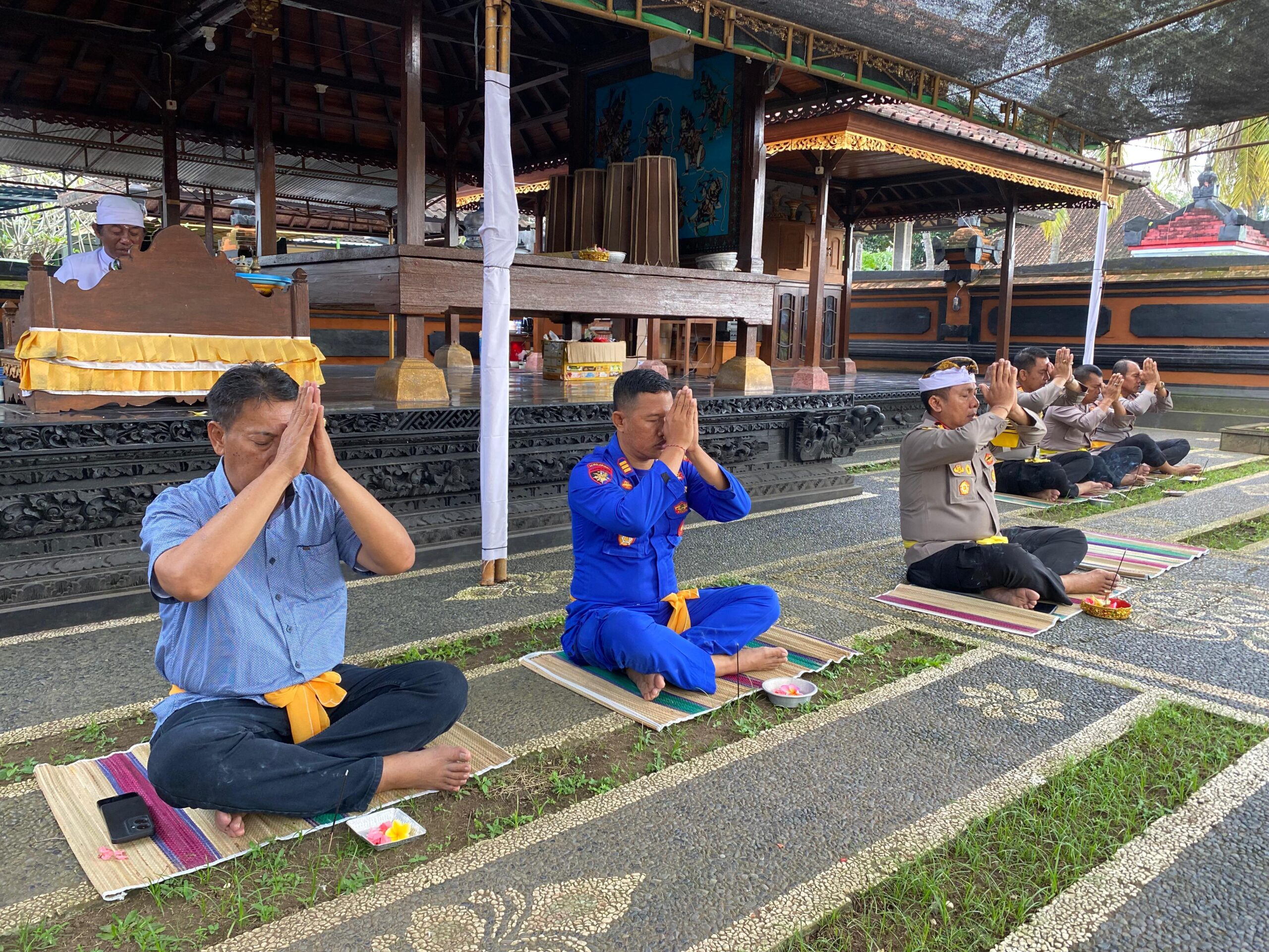 Sebanyak 30 personel mengikuti kegiatan di pura, sementara puluhan lainnya yang beragama Islam mengikuti kegiatan serupa di masjid. Masing-masing rangkaian berjalan khidmat dari pukul 08.30 hingga sekitar pukul 09.30 Wita.