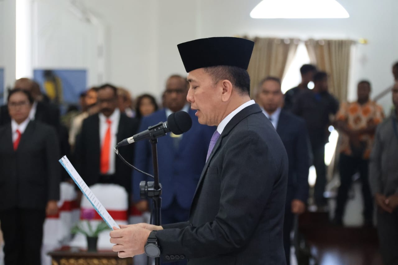 Jayapura – Penjabat (Pj) Gubernur Papua Agus Fatoni melantik dan mengukuhkan 92 pejabat administrator dan pengawas di lingkup Pemerintah Provinsi Papua. Pelantikan ini berlangsung di Lukmen Hall, Gedung Negara, Jayapura, Papua, Kamis (07/08/2025).