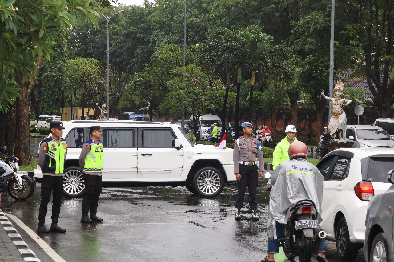 Badung – Pengamanan ketat dilakukan Polres Kawasan Bandara I Gusti Ngurah Rai dalam rangka menyambut kedatangan Presiden Republik Indonesia, Prabowo Subianto, yang mendarat melalui Terminal VIP 1 Bandara I Gusti Ngurah Rai pada Rabu (25/6/2025).