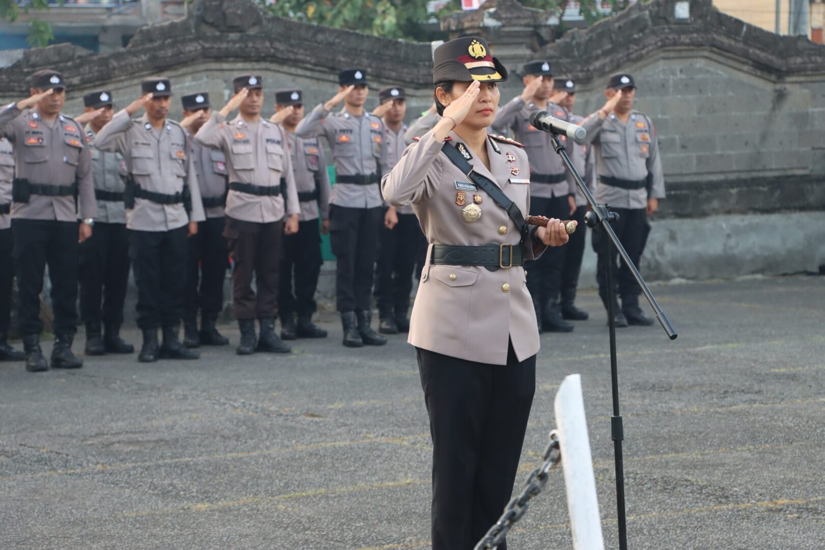 Upacara yang berlangsung khidmat ini dipimpin langsung oleh Kapolres Jembrana, AKBP Kadek Citra Dewi Suparwati, S.H., S.I.K., M.I.K., selaku pimpinan rombongan. Kegiatan dimulai pukul 07.30 WITA dan diikuti oleh jajaran pejabat utama Polres Jembrana, Kapolsek se-Jembrana, Bhayangkari Cabang Jembrana, serta personel Polres Jembrana.