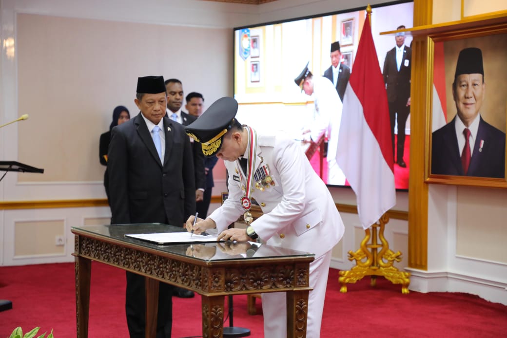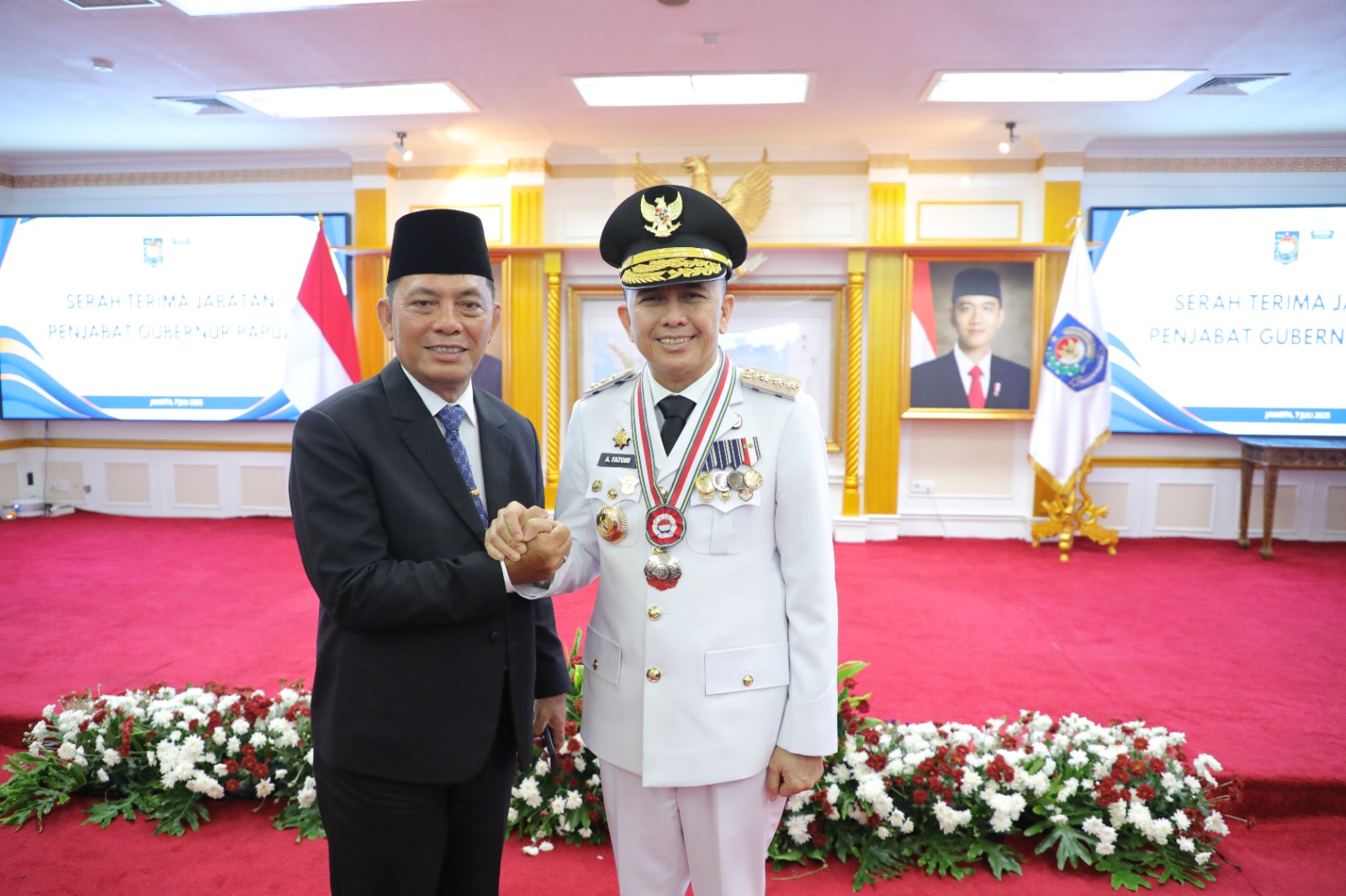 Pelantikan tersebut berdasarkan Keputusan Presiden Republik Indonesia Nomor 65/P Tahun 2025 tanggal 2 Juli Tahun 2025 tentang Pemberhentian dan Pengangkatan Penjabat Gubernur Papua