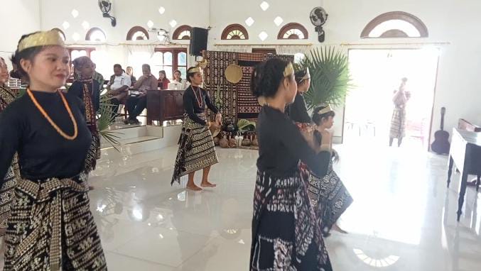 Gemulai tarian dari remaja jemaat rayon tujuh, GMIT Sonaf Manekan Tabun, mengiringi prosesi masuknya ibu pendeta Nita naik ke atas mimbar, dalam rangkaian ibadah kenaikan Isa Al Masih yang dilaksanakan pada Kamis 18 Mei 2023, masih dalam bulan bahasa dan budaya, majelis jemaat yang bertugas adalah dari rayon tujuh.