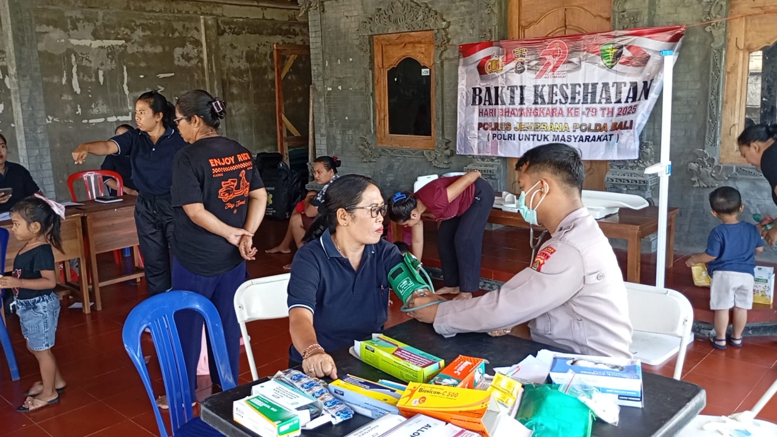 Kegiatan sosial yang dimulai sejak pukul 09.00 WITA ini mendapat sambutan antusias dari warga. Puluhan anak tampak hadir bersama orang tua mereka untuk mendapatkan imunisasi dasar lengkap yang difasilitasi oleh tenaga medis gabungan dari Puskesmas 1 Jembrana, bidan desa, serta ahli gizi. Sementara itu, warga dewasa memanfaatkan layanan cek kesehatan secara gratis.