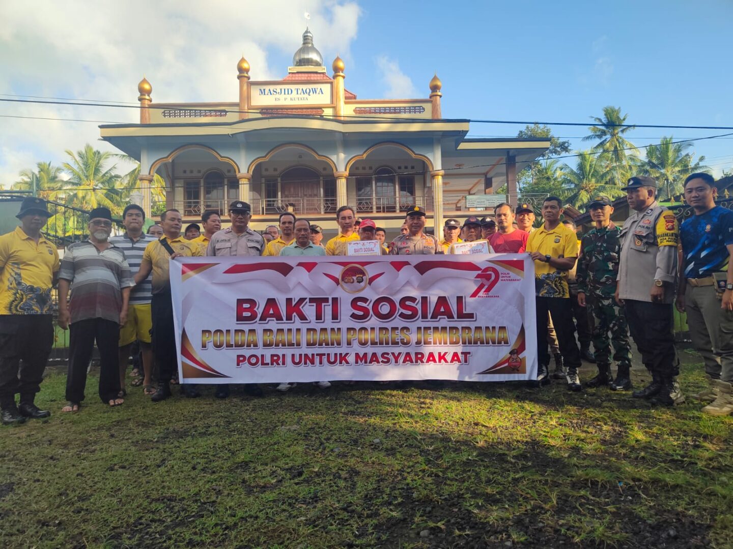 Jembrana – Menjelang peringatan Hari Bhayangkara ke-79, jajaran Polsek Pekutatan melaksanakan kegiatan bakti religi dan sosial di Masjid Taqwa, Desa Pekutatan, Kecamatan Pekutatan, Kabupaten Jembrana, Bali, Jumat (13/6/2025) pagi.