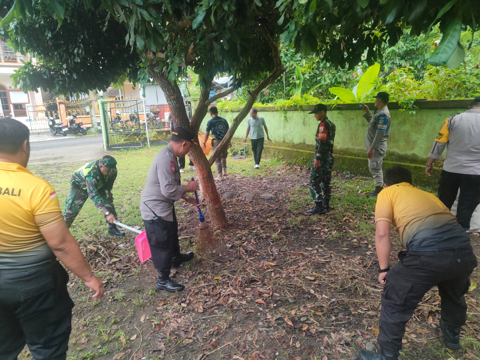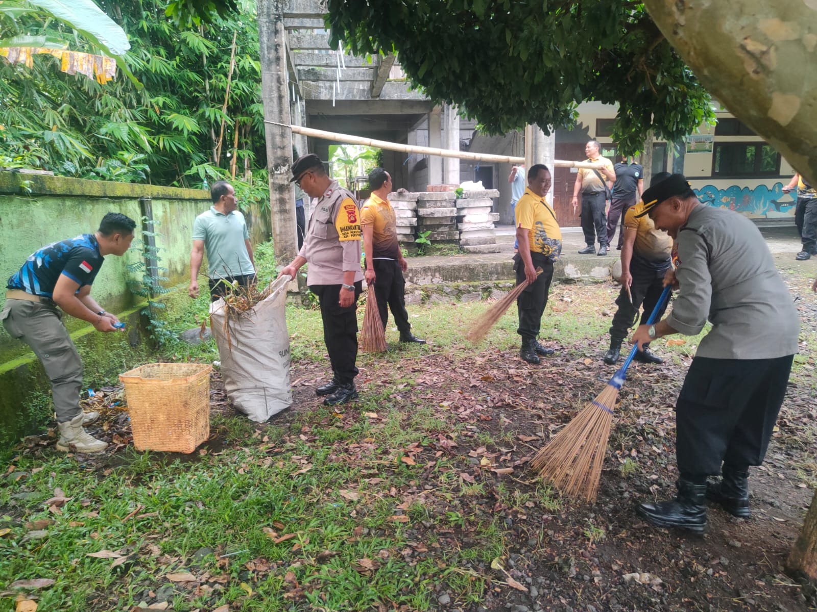 Usai apel, seluruh peserta kegiatan bersama-sama melakukan kerja bakti membersihkan lingkungan Masjid Taqwa. Personel Polsek dan warga tampak bergotong royong menyapu halaman, merapikan area sekitar masjid, hingga membersihkan tempat wudu dan kamar mandi.