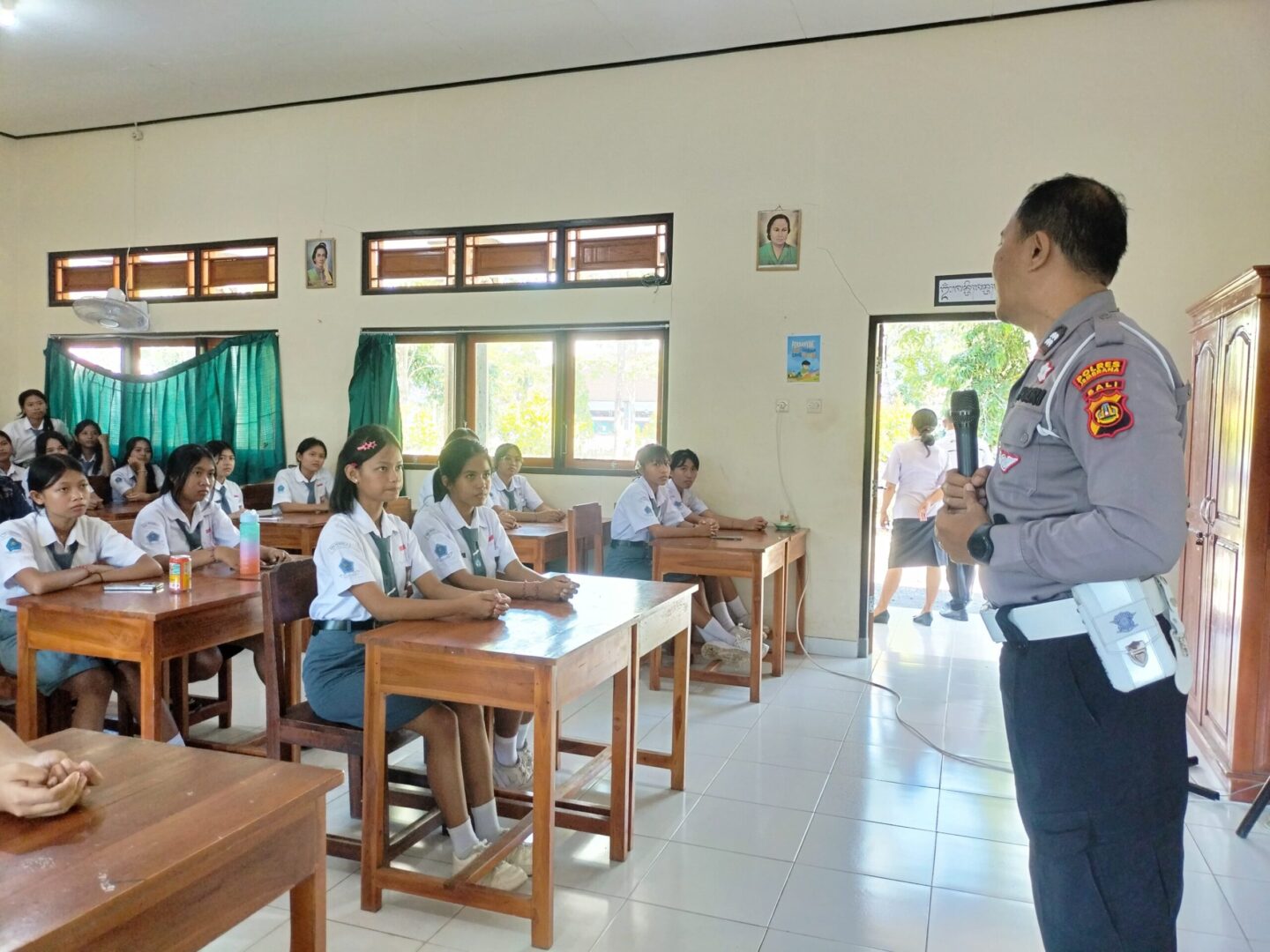 “Kami berharap melalui kegiatan ini, para siswa dapat menjadi pelopor keselamatan berlalu lintas di lingkungan sekolah maupun di masyarakat,” ujar perwira dengan pangkat dua balok kuning dipundak tersebut.