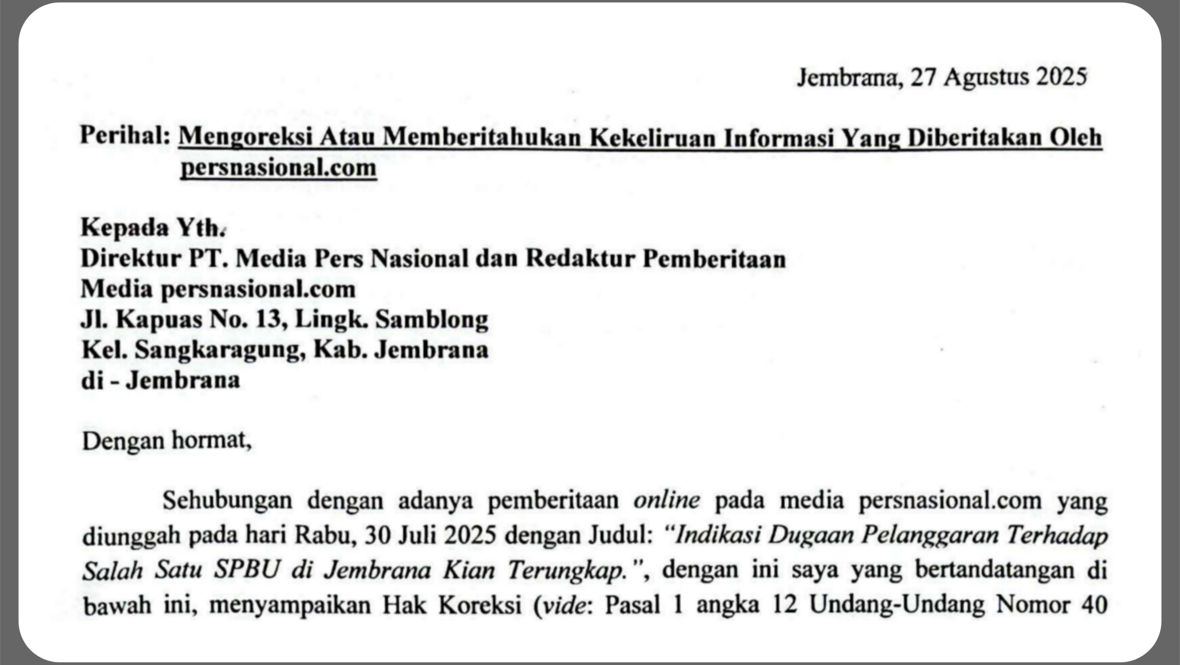 Jembrana – Menanggapi pemberitaan di media persnasional.com berjudul “Indikasi Dugaan…